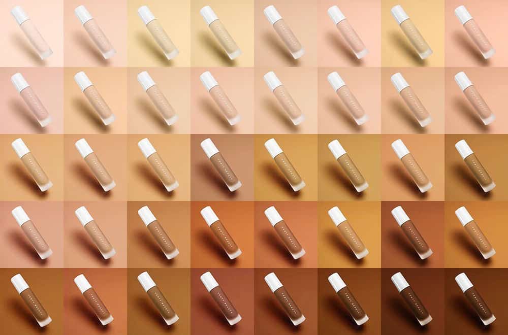 O que me chamou a atenção, logo no início, foi a quantidade de tons de base que eram oferecidas pela Fenty Beauty. É para amar ou não? São 40 tons de base, isso mesmo, QUARENTA! Contando com as bases maravilhosas, temos mais de 16 produtos, entre eles primer, bastão multifuncional, iluminadores, gloss, pincéis, esponjas e muitos outros produtos.